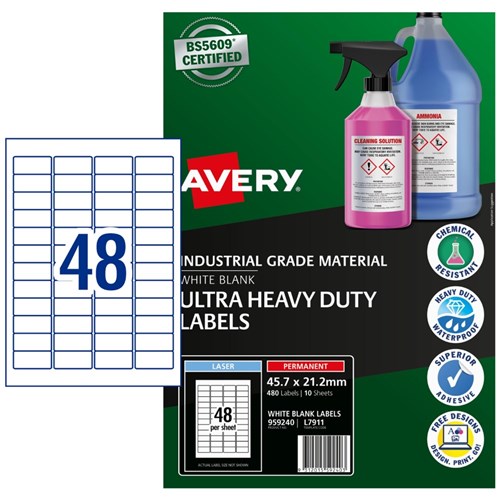 Avery Identification Laser Ultra Resistant White L7911 45.7x21.2mm 46UP 460 Labels