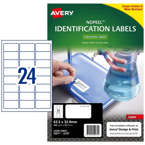 Avery NoPeel Laser Labels Identification White L6146 63.5x33.9mm 24UP 240 Labels