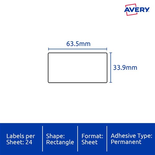 • Size: 63.5x33.9mm 240 labels, 10 sheets. 24 labels per sheet (24UP).