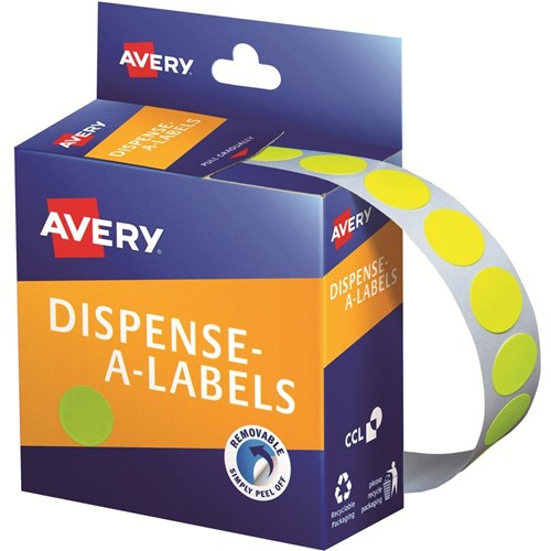 Avery Removable Dispenser Labels 14mm Round Fluoro Yellow Pack Of 700