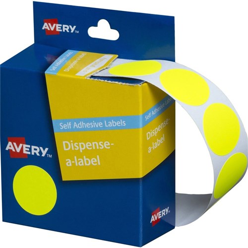 Avery Removable Dispenser Labels 24mm Round Fluoro Yellow Pack Of 350