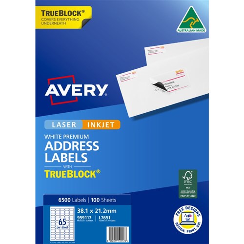 Avery Trueblock Address Labels Laser L7651 38.1 x 21.2mm 65UP 6500 Labels
