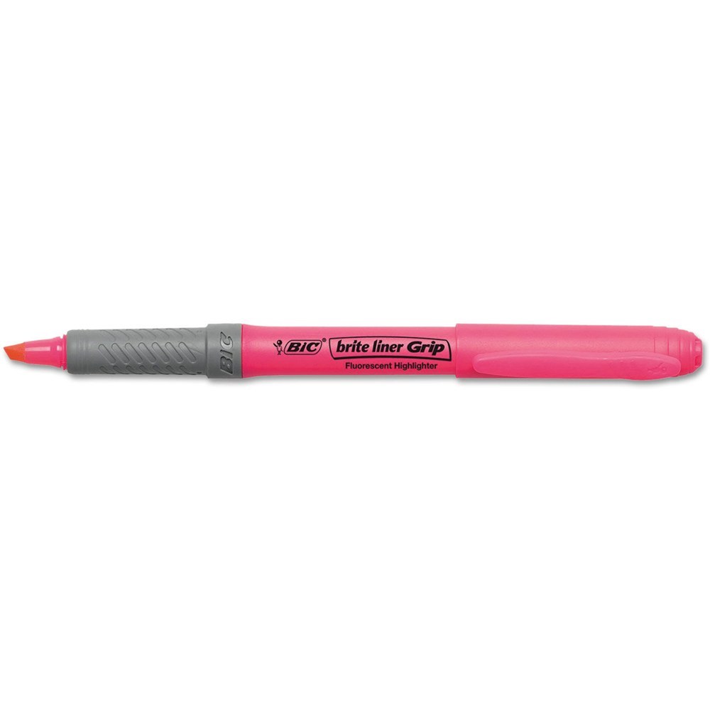 Bic Brite Liner Grip Highlighters Chisel 1.6-3.3mm Pink Pack Of 12