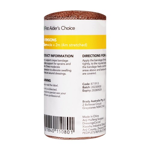 First Aider's Choice Heavy Support Crepe Bandage 7.5cm Wide Tan