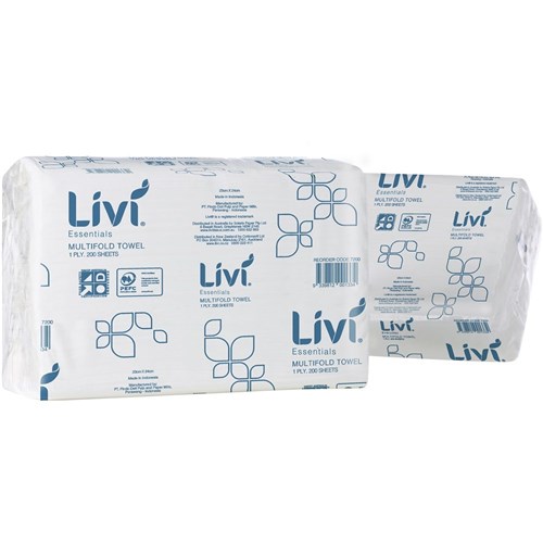 Livi Essentials Hand Towel Multifold 1 Ply 200 Sheet Box Of 20