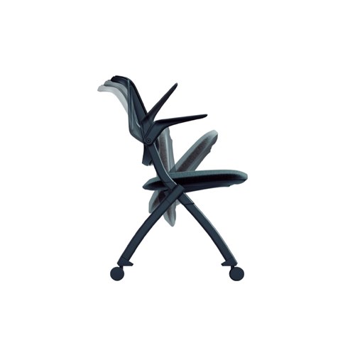 OLG Logic Training Chair With Castors And Arms Black Fabric Seat Mesh Back