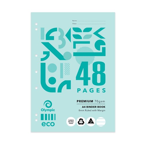 Olympic ECO B848 Binder Book A4 7 Hole Punched 8mm With Red Margin 48 Page