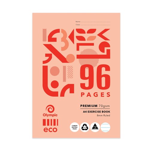 Olympic ECO E896 Exercise Book A4 8mm Ruled With Red Margin 96 Page