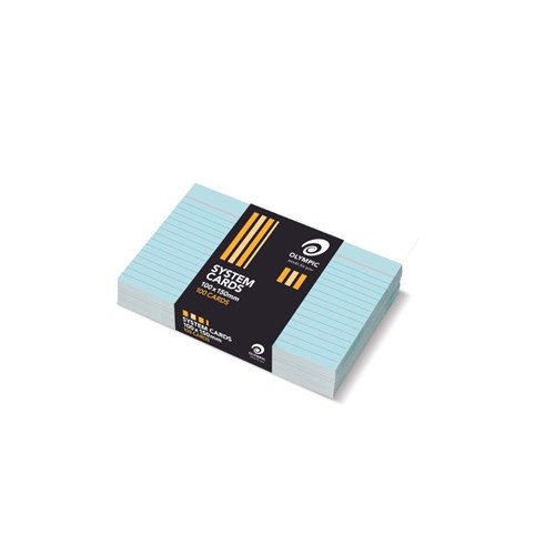 Olympic System Cards 100 x 150mm Ruled Blue Pack Of 100