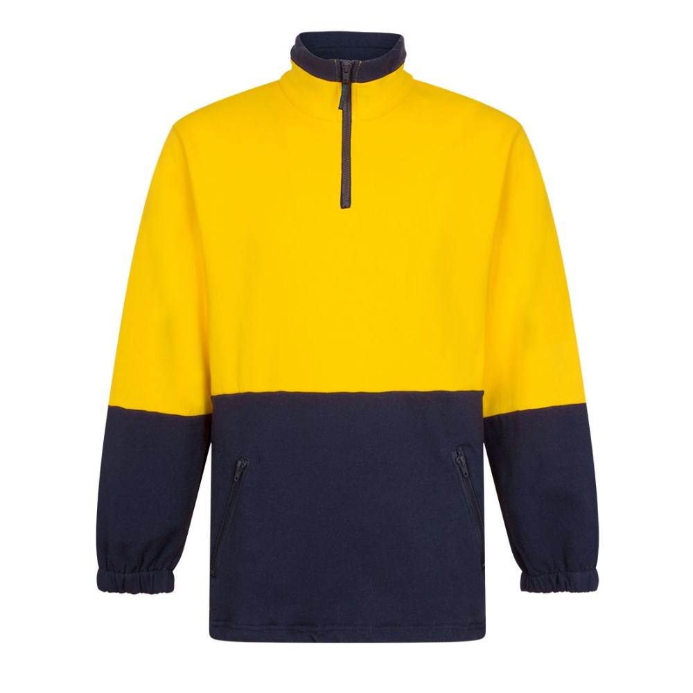 Portwest Hi-Vis Contrast 1/4 Zip Class D Brush Fleece Jumper Large Yellow And Navy