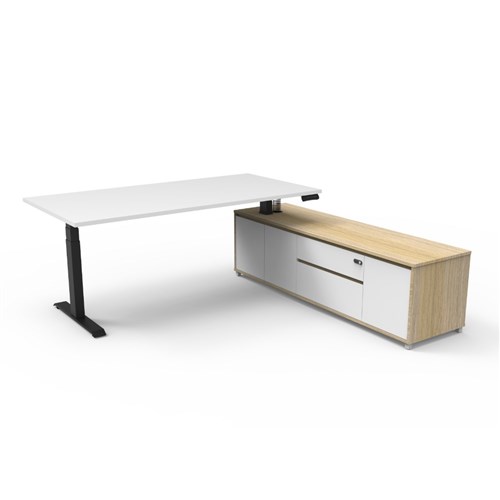 Rapidline Boost+ Executive Desk + RHS Cabinet 2020W x 2011D x 620-1270mmH White/Blk