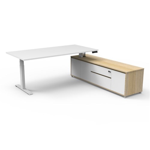 Rapidline Boost+ Executive Desk + RHS Cabinet 2020W x 2011D x 620-1270mmH White/Wht