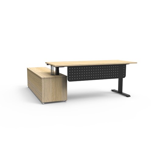 Rapidline Boost+ Executive Desk + RHS Cabinet+Panel 2020W x 1936D x 620-1270mmH Oak/Blk