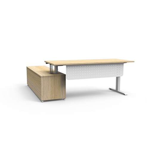 Rapidline Boost+ Executive Desk + RHS Cabinet+Panel 2020W x 1936D x 620-1270mmH Oak/Wht