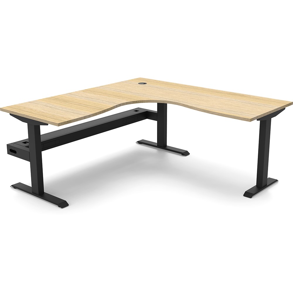 Rapidline Boost Static Corner Workstation + Tray 1500/1500W x 750D x 730mmH Oak/Black
