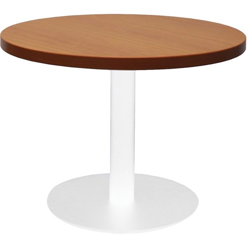 Rapidline Estillo Disc Base Round Coffee Table 600D x 450mmH Cherry Top White Base