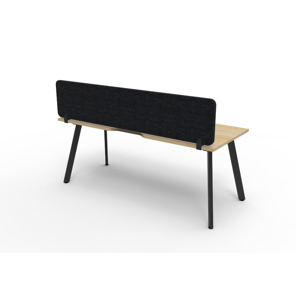 • Natural Oak worksurface with rigid edging and 410mmW x 50mmD scallop cable access. Black Satin powder coat frame. Eco screen.