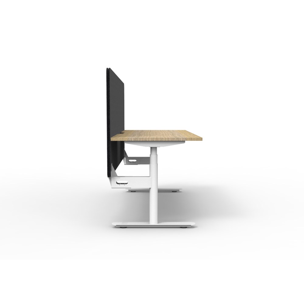 Rapidline Halo+ Single Sided Workstation + Black Eco Screen 1500Wx750Dx620-1270mmH Oak/Wht