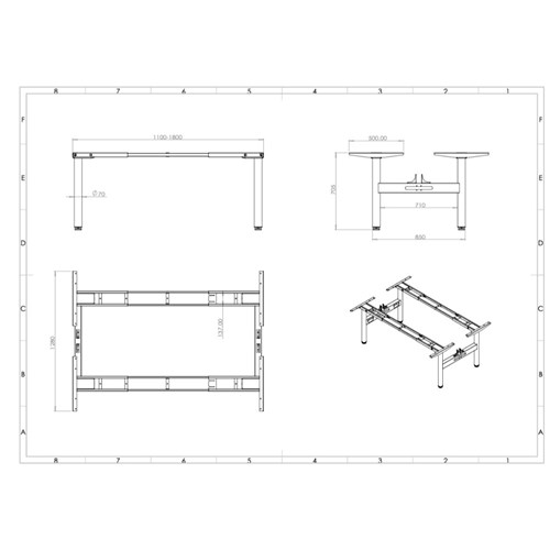• The telescopic frame allows for flexible configurations between 1100mm and 1800mm wide, accommodating various team sizes and layouts. Finished in a durable powder coat, this frame offers a professional and modern aesthetic.