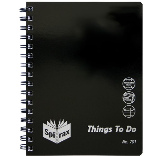 Spirax 701 Things To Do Notebook Poly Cover A5 Ruled 96 Page Side Open Black