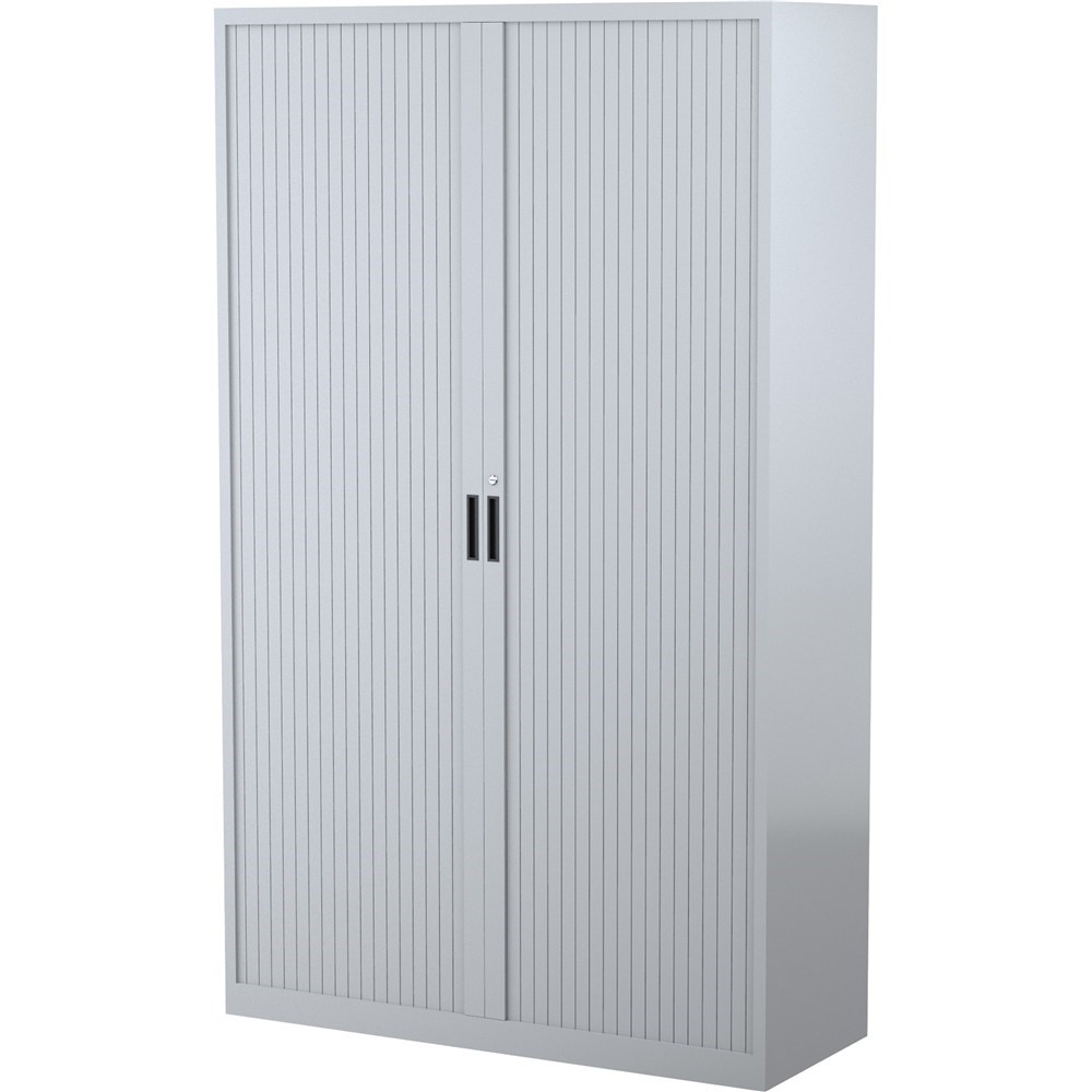 • Steelco Tambour Door Cupboard Includes 5 Shelves 1200W x 463D x 2000mmH Silver Grey